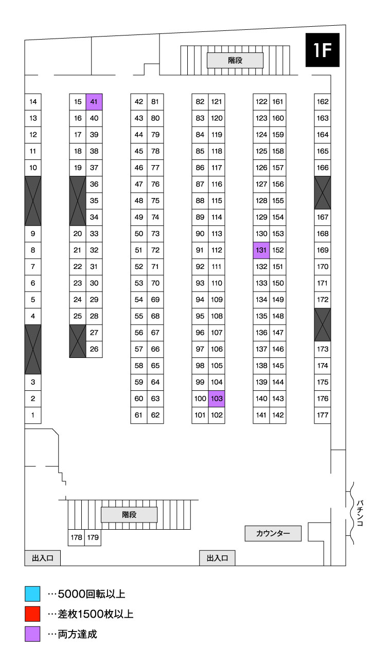 | 41 | 回胴式遊技機 グランベルム | +3,390枚 | 115.6% | 7,238G |