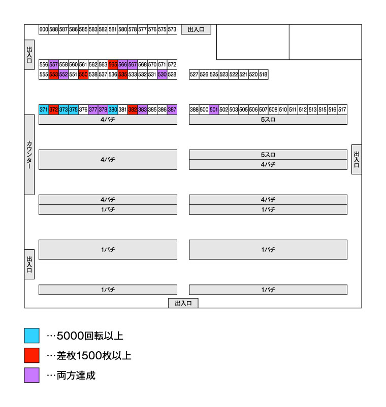 | 566 | ゴーゴージャグラー3 | +3,357枚 | 112.8% | 8,766G |