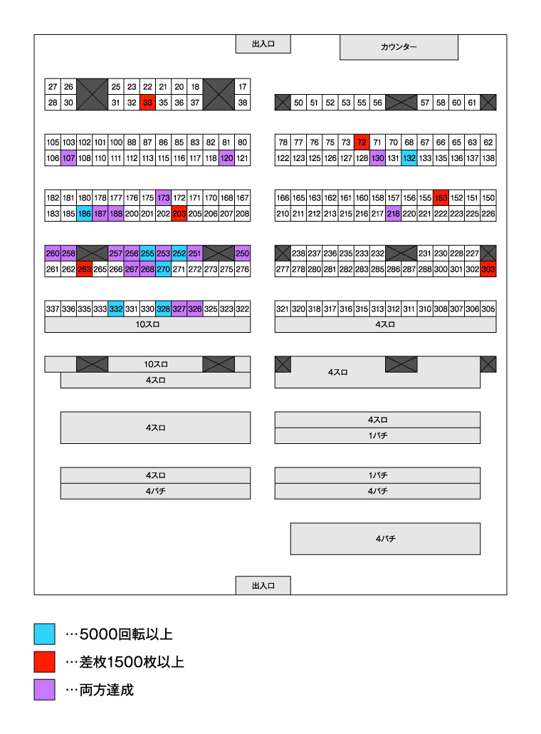 | 台番 | 差枚 | 出率 | G数 |
