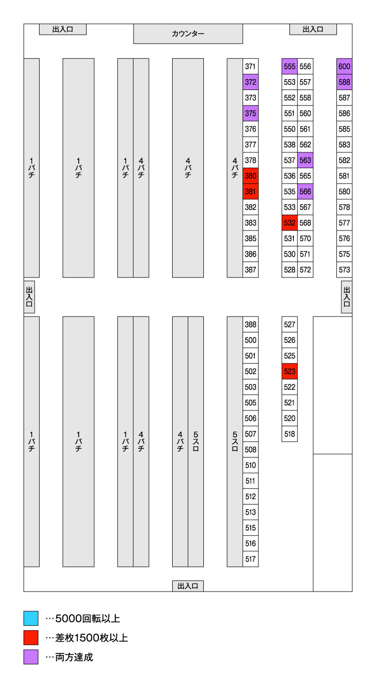 | 566 | ゴーゴージャグラー3 | +2,123枚 | 112.0% | 5,906G |