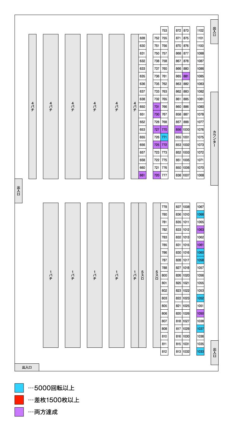 | 台番 | 差枚 | 出率 | G数 |