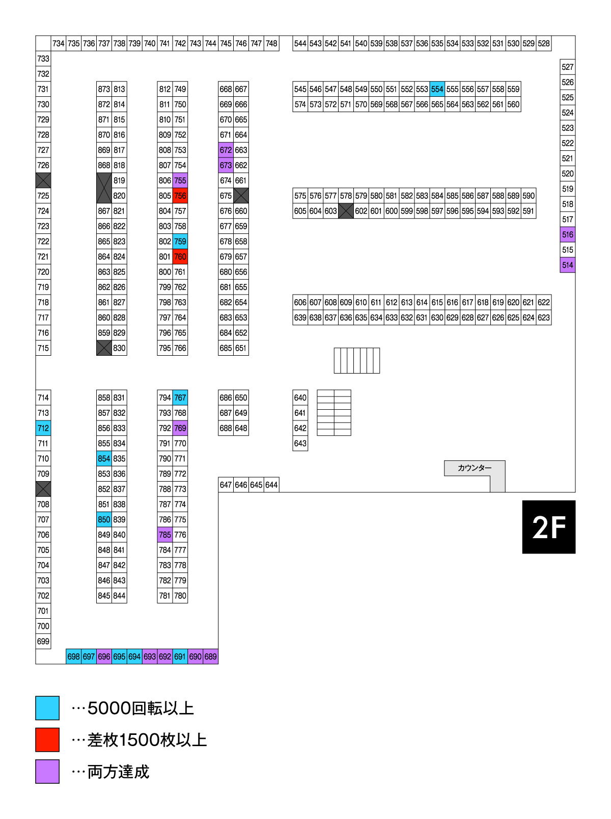 | 7 | 685 | Lパチスロ 炎炎ノ消防隊2 | +8,775枚 |