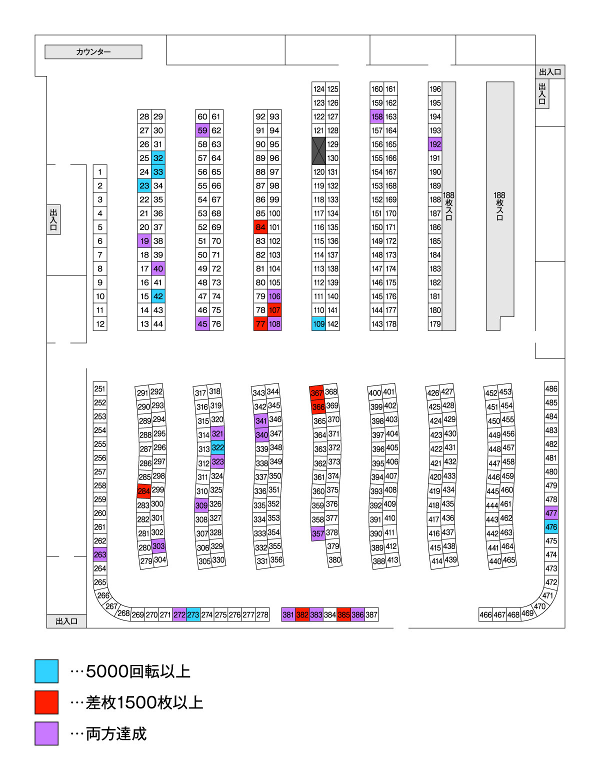 | 台番 | 差枚 | 出率 | G数 |