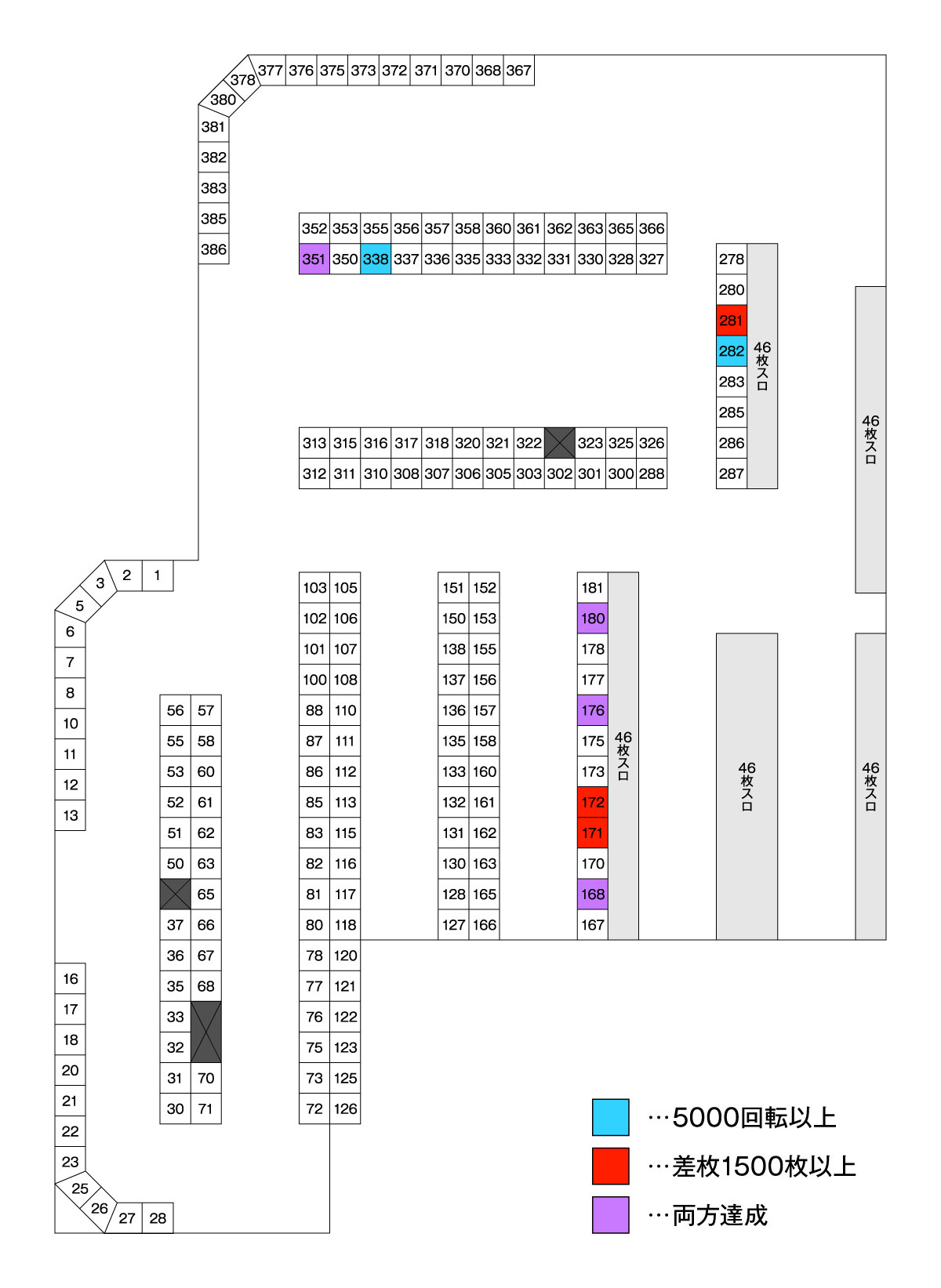 | 台番 | 差枚 | 出率 | G数 |