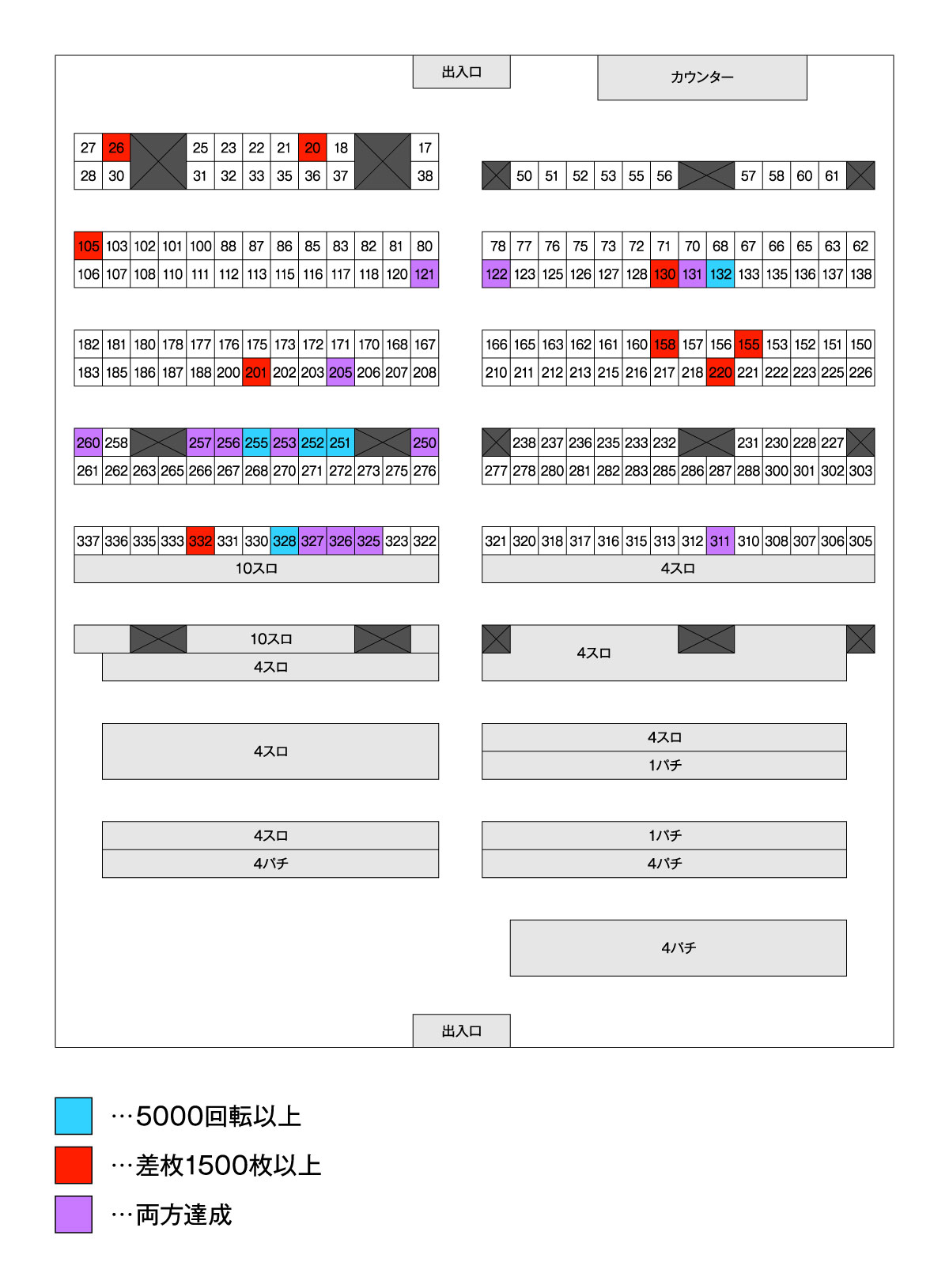 | 台番 | 機種名 | 差枚 | 出率 | G数 |
